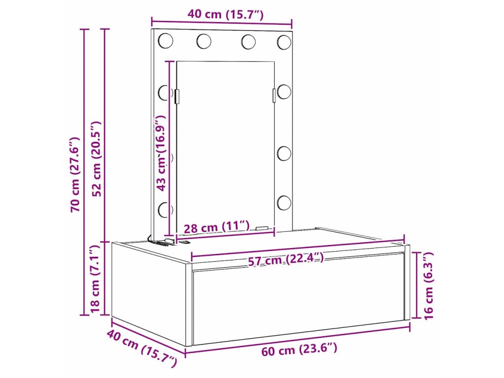 - Integrace plochého zrcadla: Plochý povrch zrcadla zajišťuje jasné odrazy, které jsou ideální pro každodenní úpravy. Jeho jednoduchý design zvyšuje moderní vzhled stolku a splňuje funkční i dekorativní účel.