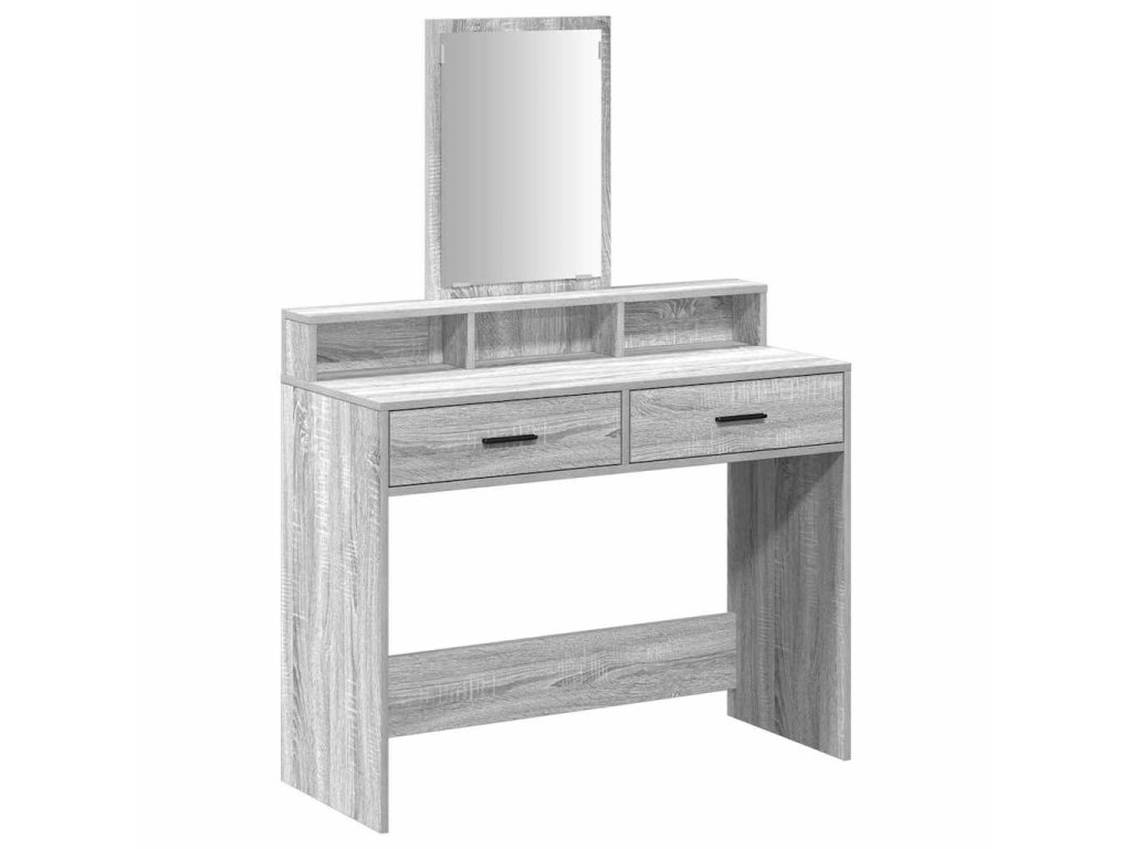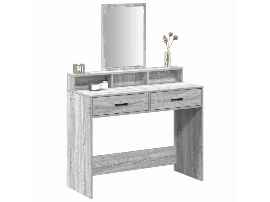 - Konstrukce z kompozitního dřeva Tento toaletní stolek je ze silného kompozitního dřeva, takže je stabilní a odolný. Materiál je známý svojí tvrdostí, takže je ideální na každodenní užívání. Matný povrch jeho designu dodává štíhlý vzhled a vyžaduje minimum údržby.