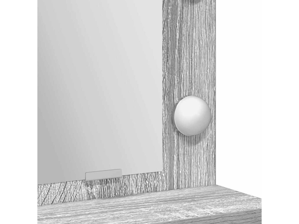 - Integrované osvětlení: Stolek má LED osvětlení, které poskytuje jasné a úsporné světlo. Tato světla zlepšují viditelnost při úpravách, což usnadňuje nanášení make-upu nebo kontrolu oblečení. Tlačítkový spínač zajišťuje snadné ovládání, což usnadňuje uživatelský zážitek.