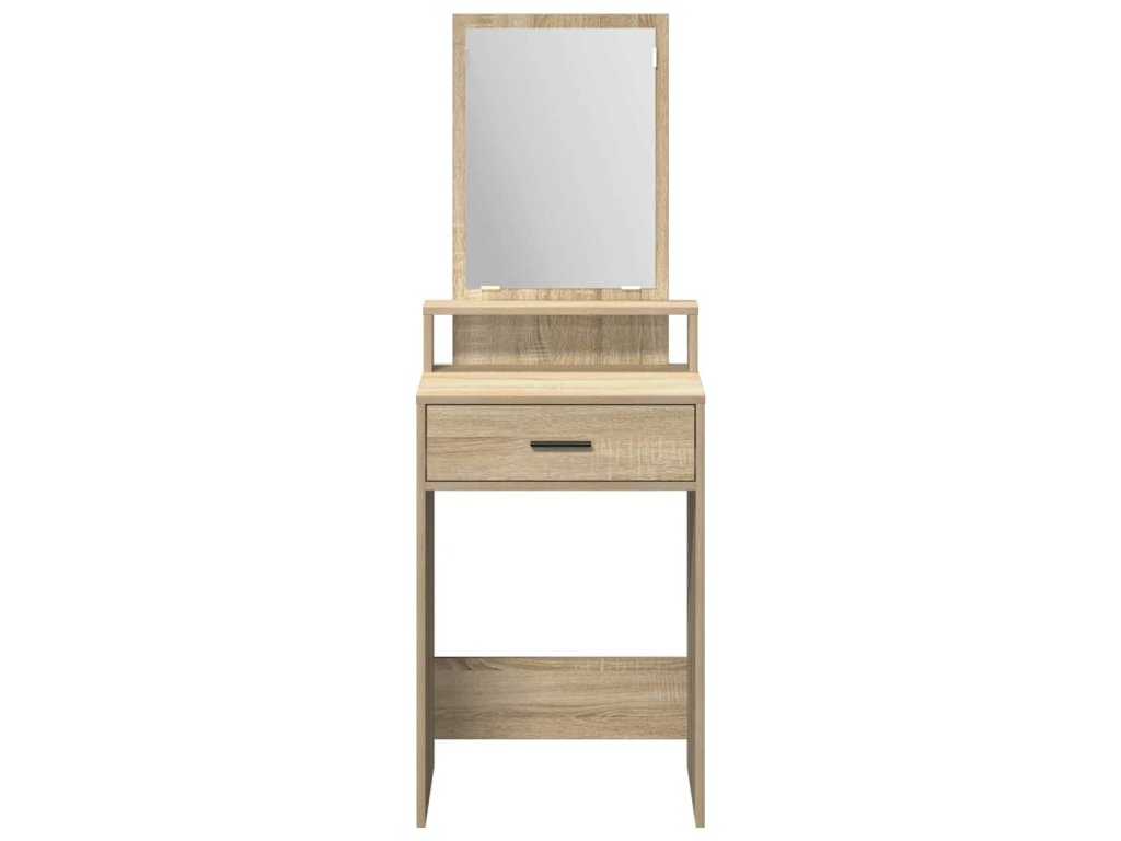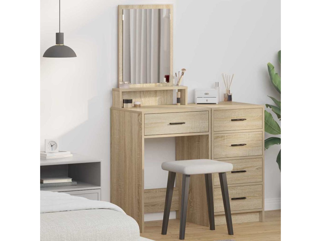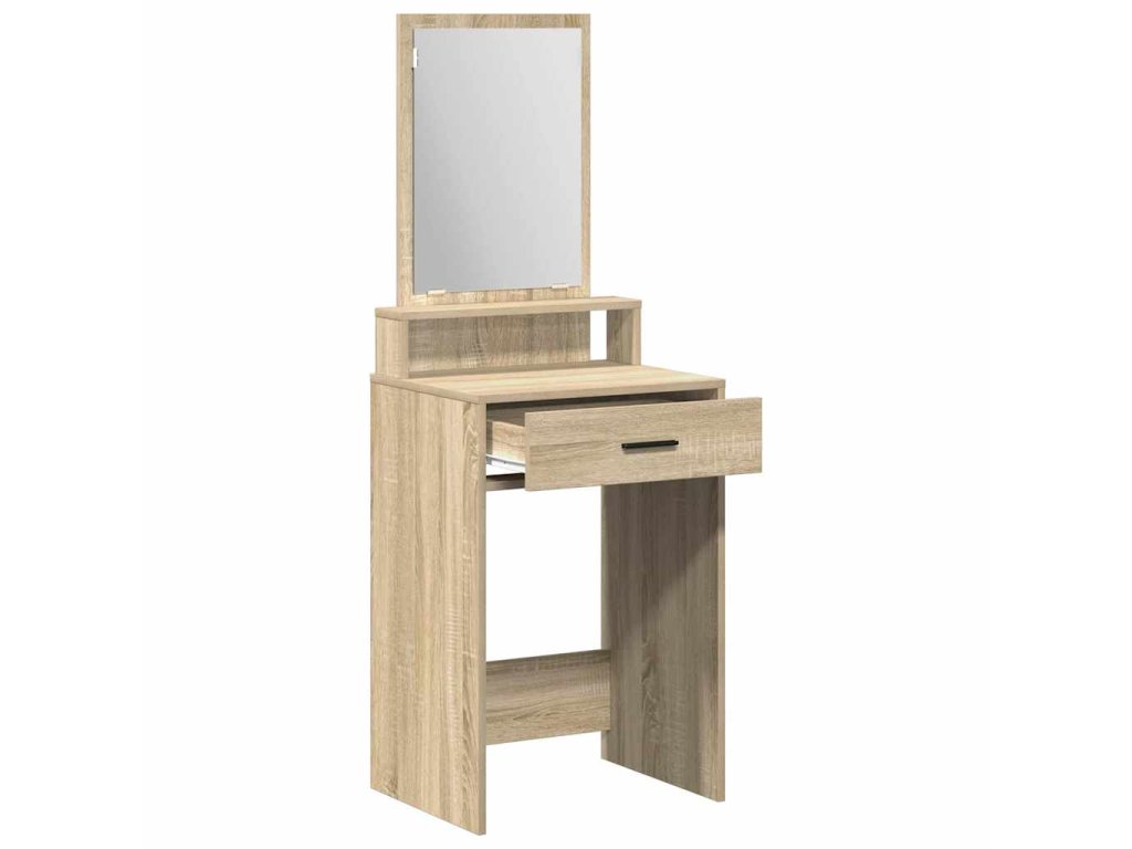 - Konstrukce z kompozitního dřeva Tento toaletní stolek je ze silného kompozitního dřeva, takže je stabilní a odolný. Materiál je známý svojí tvrdostí, takže je ideální na každodenní užívání. Matný povrch jeho designu dodává štíhlý vzhled a vyžaduje minimum údržby.
