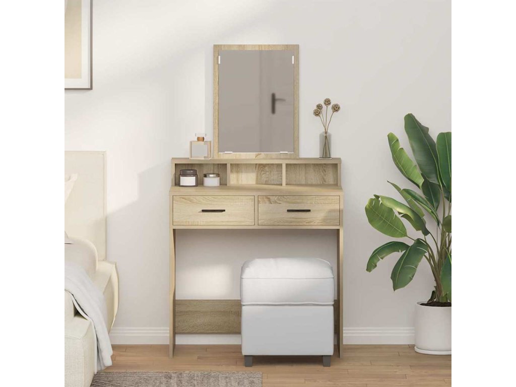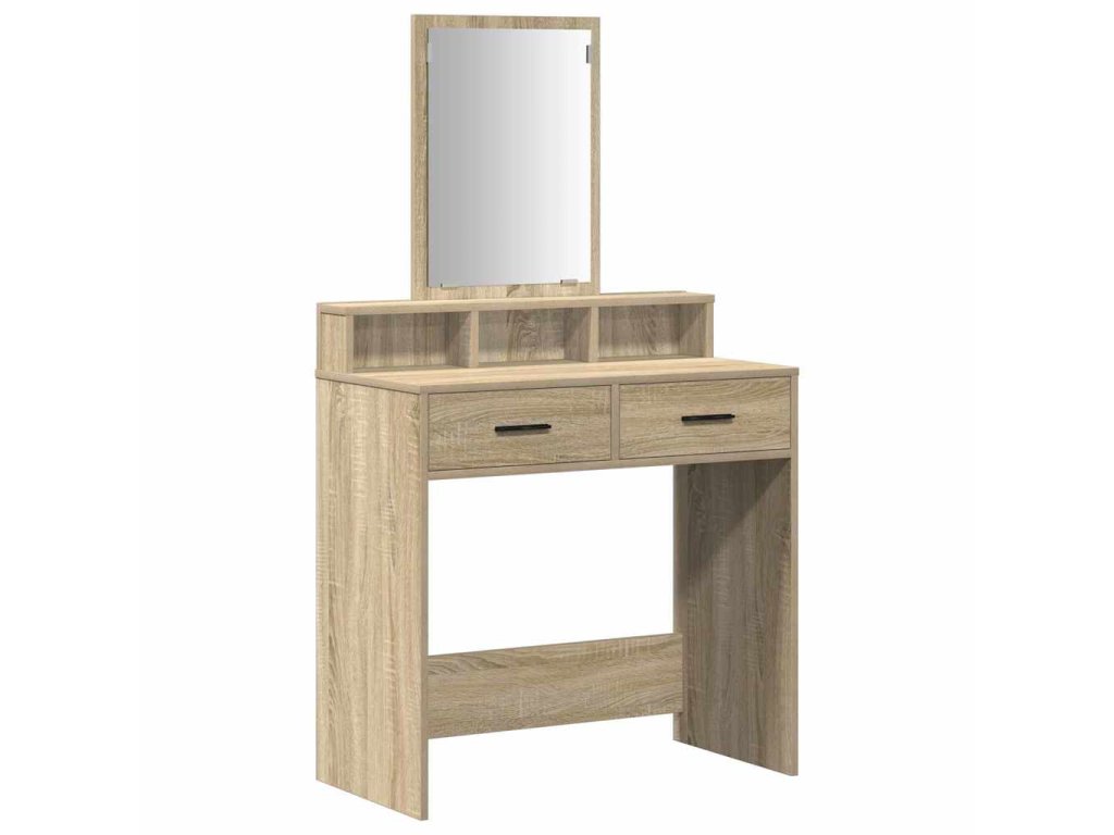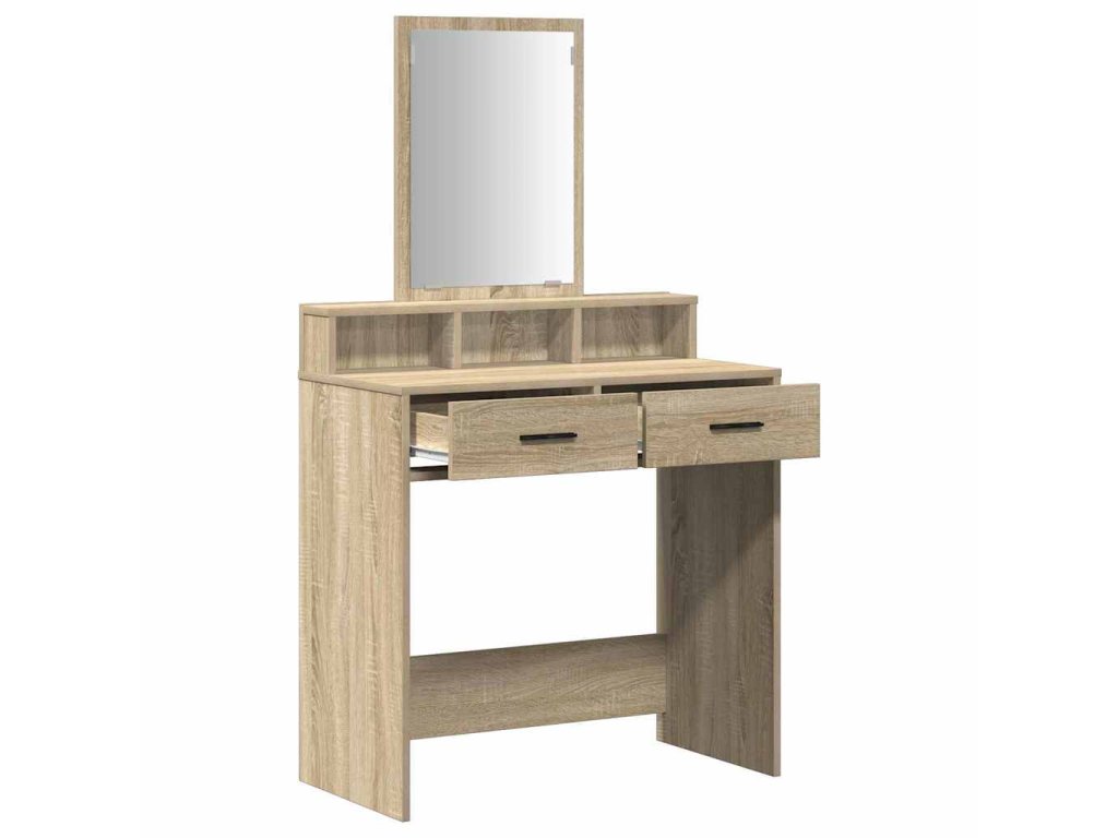 - Konstrukce z kompozitního dřeva Tento toaletní stolek je ze silného kompozitního dřeva, takže je stabilní a odolný. Materiál je známý svojí tvrdostí, takže je ideální na každodenní užívání. Matný povrch jeho designu dodává štíhlý vzhled a vyžaduje minimum údržby.