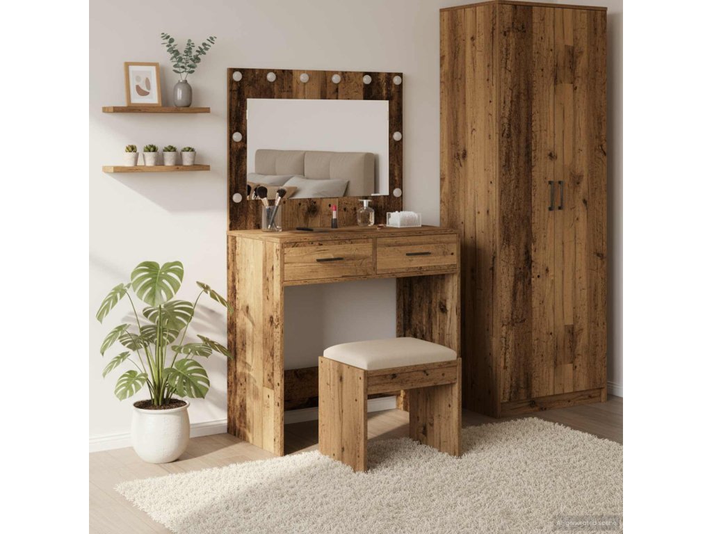 - Vysoce kvalitní inženýrské dřevo: Tento toaletní stolek je vyroben z odolného inženýrského dřeva, takže je stylový a spolehlivý. Textura dřeva mu dodává luxusní vzhled a zajišťuje, že vydrží – skvělá volba pro ty, co si zakládají na stylu. Je silný a robustní, připravený na každodenní používání bez známek opotřebení.