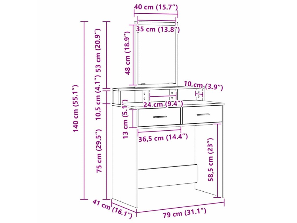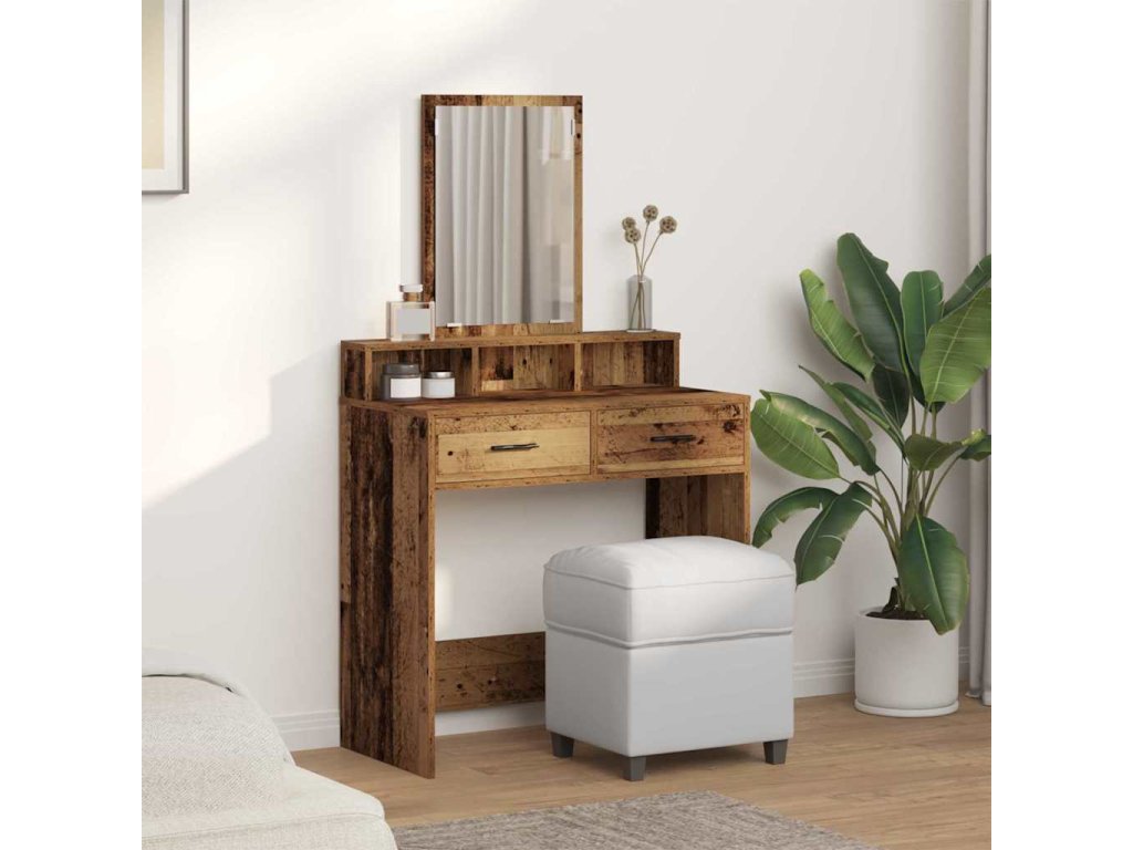 - Konstrukce z kompozitního dřeva Tento toaletní stolek je ze silného kompozitního dřeva, takže je stabilní a odolný. Materiál je známý svojí tvrdostí, takže je ideální na každodenní užívání. Matný povrch jeho designu dodává štíhlý vzhled a vyžaduje minimum údržby.