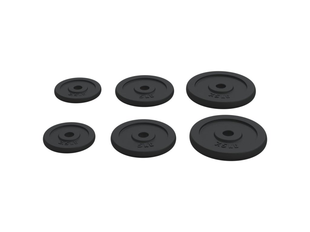 Tato sada se skládá ze 2 ks 7,5kg závaží, 2 ks 5kg závaží a 2 ks 2,5kg závaží. Je ideální pro posilování a tvarování svalů při použití s obouruční tyčí, jednoručkami i zakřivenou tyčí o průměru 3 cm.
