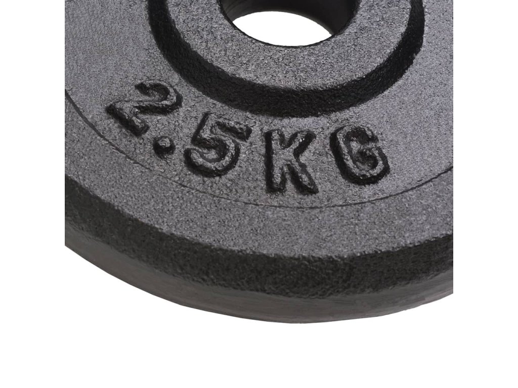 Souprava obsahuje 8 kotoučů/závaží na činky. Každý kotouč váží 2,5 kg. Je ideální pro posilování a tvarování svalů při použití s obouruční tyčí, jednoručkami i zakřivenou tyčí o průměru 30 mm. Je ideální pro domácí posilování nebo posilovnu.