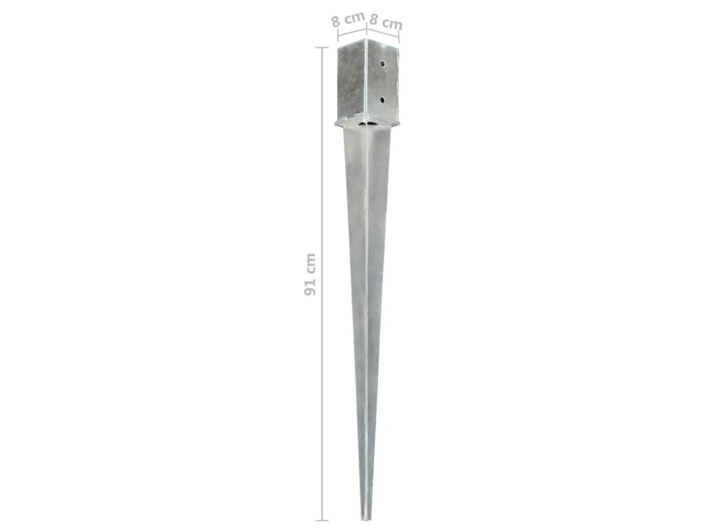 Každý kotvící hrot má robustní konstrukci a špičatý konec, aby ho šlo snadno zarazit do země. Vysoce odolná pozinkovaná ocel zajišťuje jeho výdrž a dlouhou životnost. Zápichy do země v sobě mají již předvrtané otvory, takže vám poskytnou pevný a bezpečný základ k instalaci zahradních plotů, oblouků a dalších venkovních staveb.