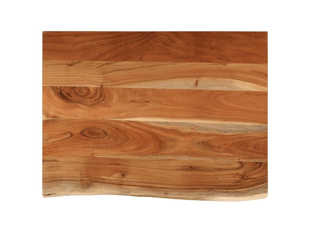- Provedení s živou hranou: Deska z masivního dřeva má rustikální živý okraj. Vzhledem k tomu, že suky, praskliny, mírně zakřivené tvary a barevné odstíny jsou jeho součástí, má každý kus svůj jedinečný charakter.