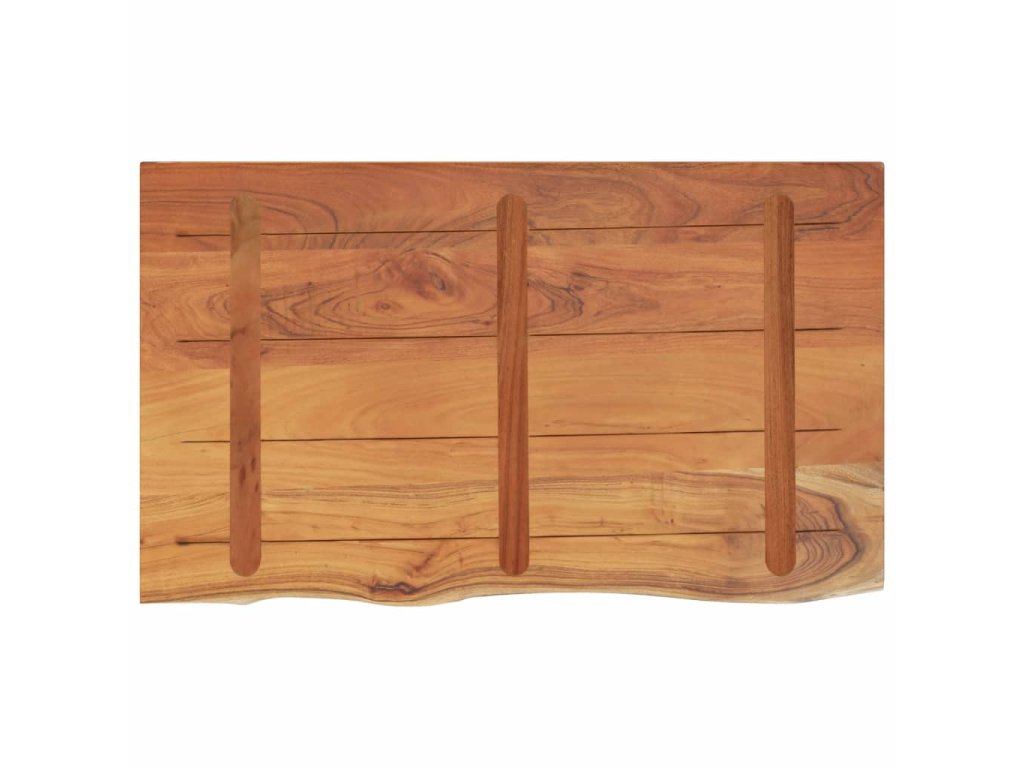 - Provedení s živou hranou: Deska z masivního dřeva má rustikální živý okraj. Vzhledem k tomu, že suky, praskliny, mírně zakřivené tvary a barevné odstíny jsou jeho součástí, má každý kus svůj jedinečný charakter.