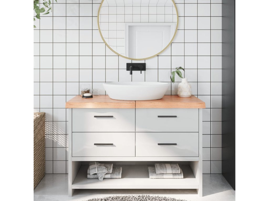 - Ruční výroba s živým okrajem: Tato koupelnová deska je ručně vyráběná s živým okrajem. Vzhledem k tomu, že suky, praskliny, mírně zakřivené tvary a barevné odstíny jsou součástí dubového dřeva, každá deska má svůj jedinečný charakter. Výběr kusu k dodání je náhodný.