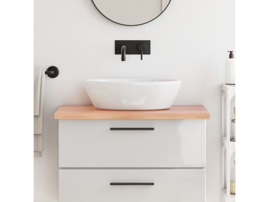 - Všestranné použití: Kromě použití jako koupelnovou desku lze tuto dřevěnou desku podle potřeby kombinovat s různými podstavci. Lze ji použít jako polici, horní desku skříňky, stolní desku atd.