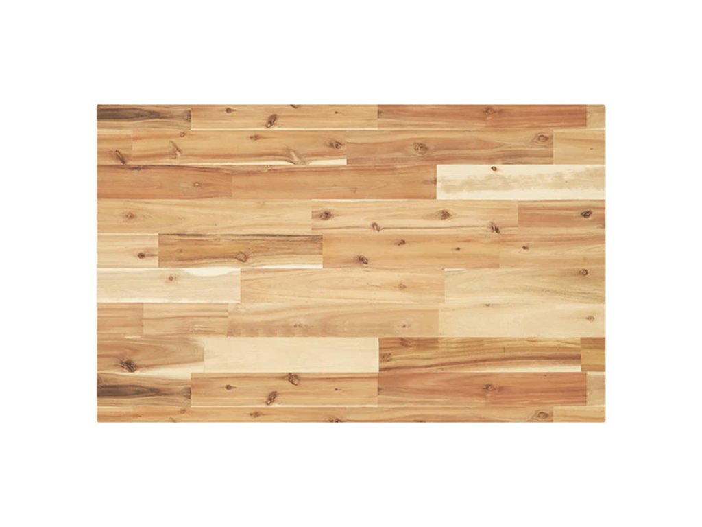 - Povrch napuštěný olejem: Tato deska je vyrobena z akáciového dřeva s olejovou povrchovou úpravou, která zvyšuje její odolnost vůči vlhkosti a poškození vodou a zároveň zachovává její jedinečný charakter.
