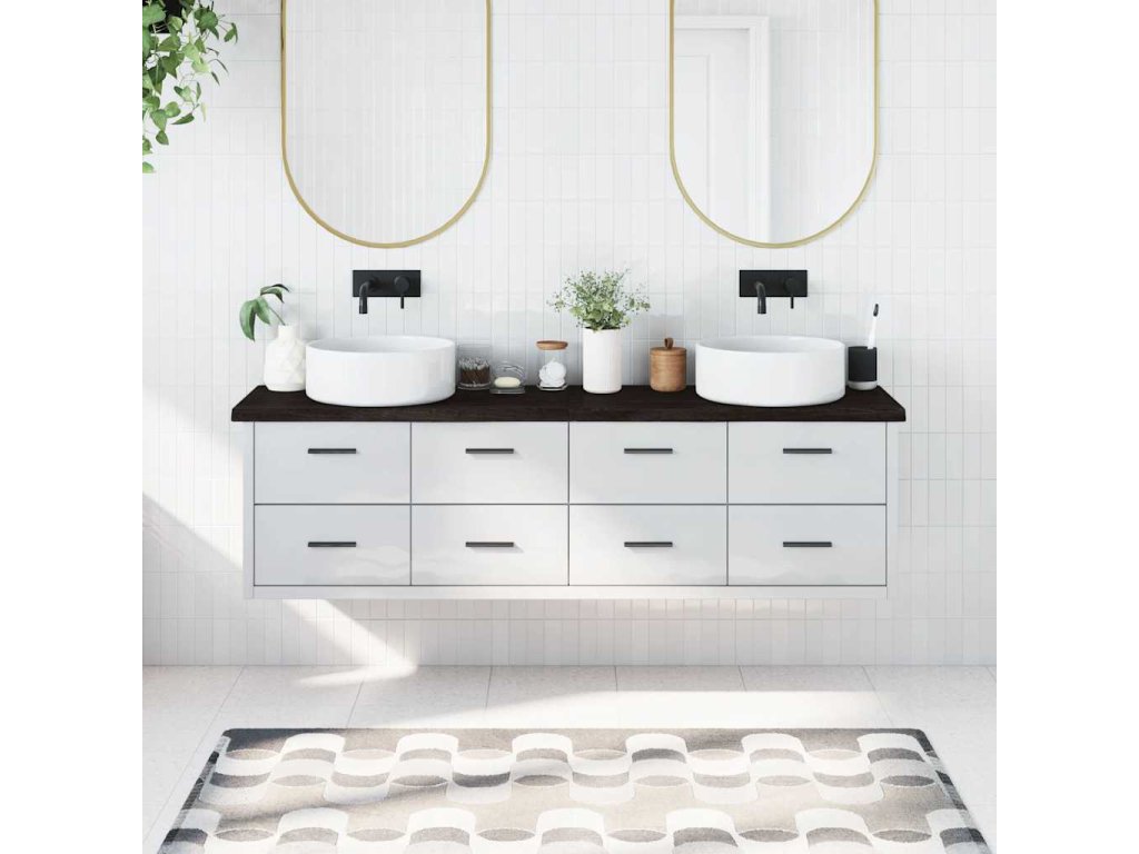 - Ošetřený povrch: Koupelnová deska byla ošetřena tmavou barvou, je tedy připravena k použití a není nutná žádná další povrchová úprava.