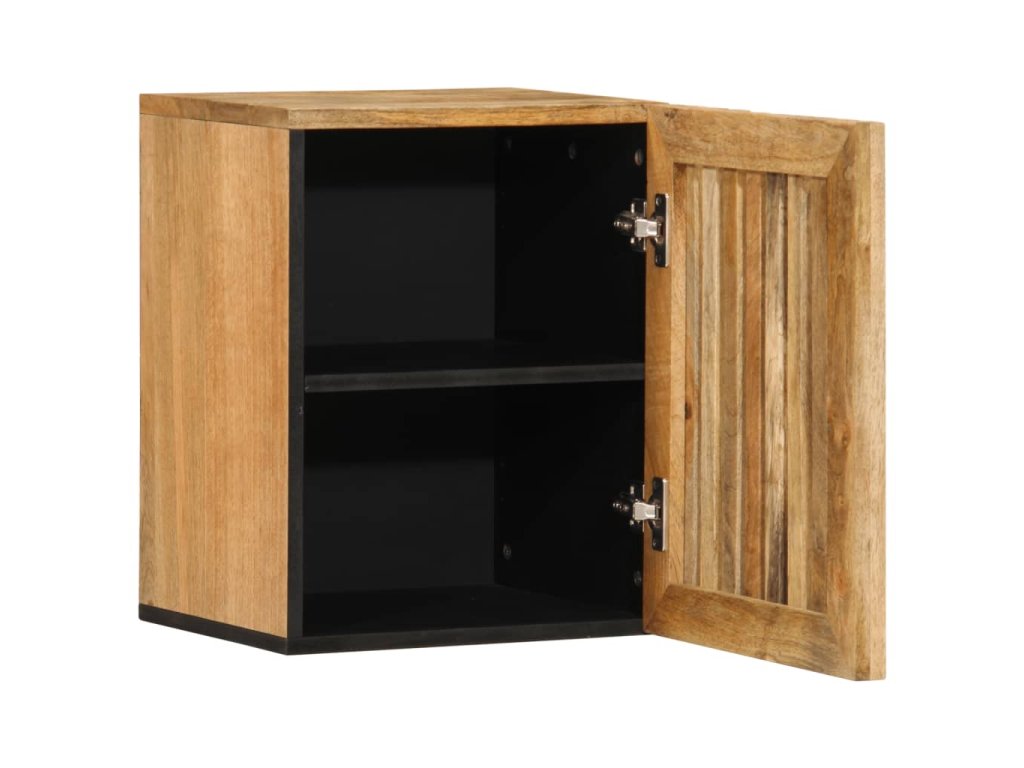 - Masivní mangovníkové dřevo: Masivní mangovníkové dřevo je pevné tropické tvrdé dřevo, ze kterého se vyrábí robustní nábytek. Krásná kresba dřeva propůjčuje každému kusu nábytku jeho jedinečný a od všech ostatních lehce odlišný vzhled. Skříňka do koupelny je vyrobená z masivního mangovníkového dřeva, je tedy stabilní a odolná.