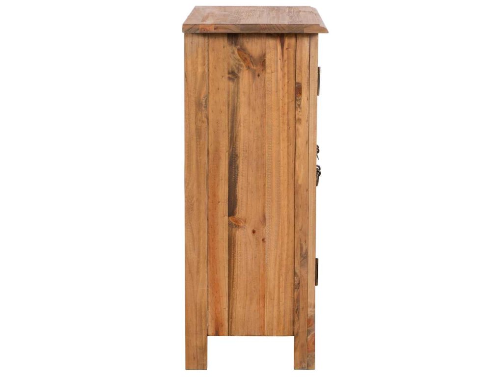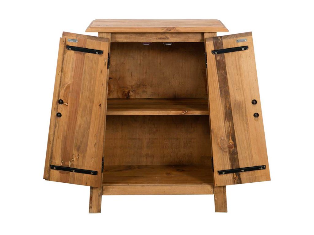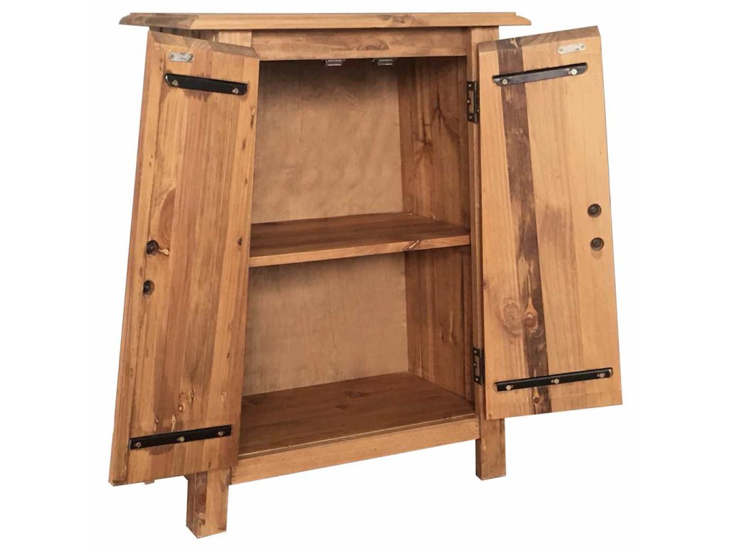 Pevná a odolná skříňka je zhotovená z masivního borového dřeva. Robustní horní část se skvěle hodí k vystavení váz a různých dekorativních předmětů. Uvnitř skříňky najdete 1 polici, která poskytuje spoustu úložného prostoru, kam si můžete uspořádat všechny vaše hygienické a kosmetické potřeby v dosahu ruky. Řemeslné zpracování podtrhuje její vintage styl.