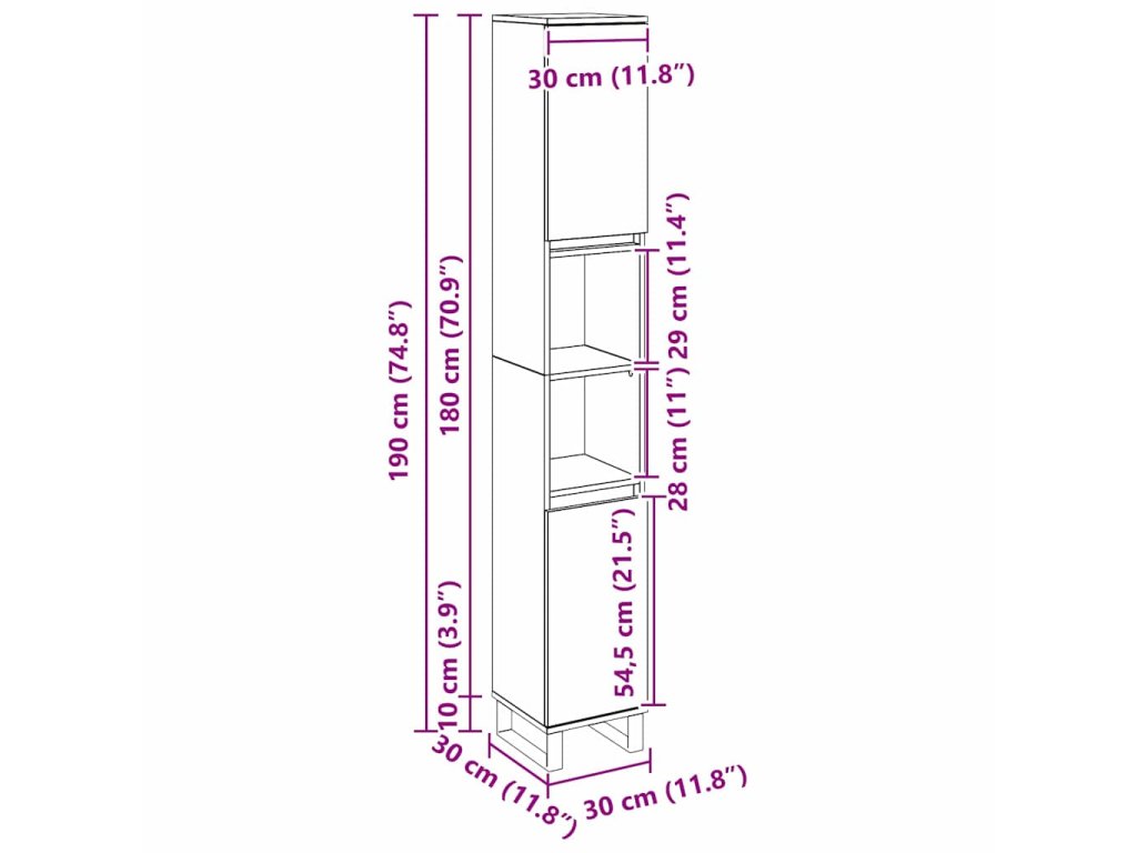 - Celkové rozměry: 30 x 30 x 190 cm (D x Š x V)