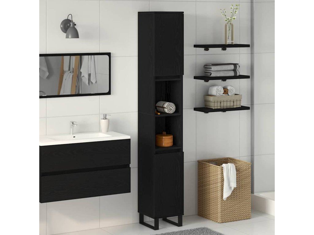 - Vyrobená z kompozitního dřeva: Je odolná a odolává vlhkosti i změnám teploty, což je ideální do koupelen. Pevná konstrukce udrží všechno na svém místě, bez ohledu na roční období.