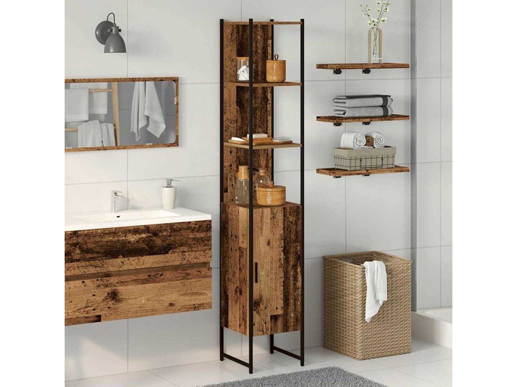 - Materiál: Skříňka do koupelny, z kompozitního dřeva a oceli, nabízí trvanlivost a hezký vzhled, poskytuje jak vizuální atraktivitu, tak i pevnost. Kompozitní dřevo má hladký povrch, zatímco ocelové komponenty zajišťují antikovou stabilitu i při každodenním používání.
