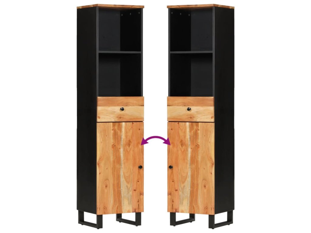 - Masivní akáciové dřevo: Tato koupelnová skříňka je vyrobena z masivního akáciového dřeva v kombinaci s kompozitním dřevem. Masivní akáciové dřevo je nádherný přírodní materiál. Akáciové dřevo je tropické tvrdé dřevo, které má hustou strukturu a je pevné a odolné.