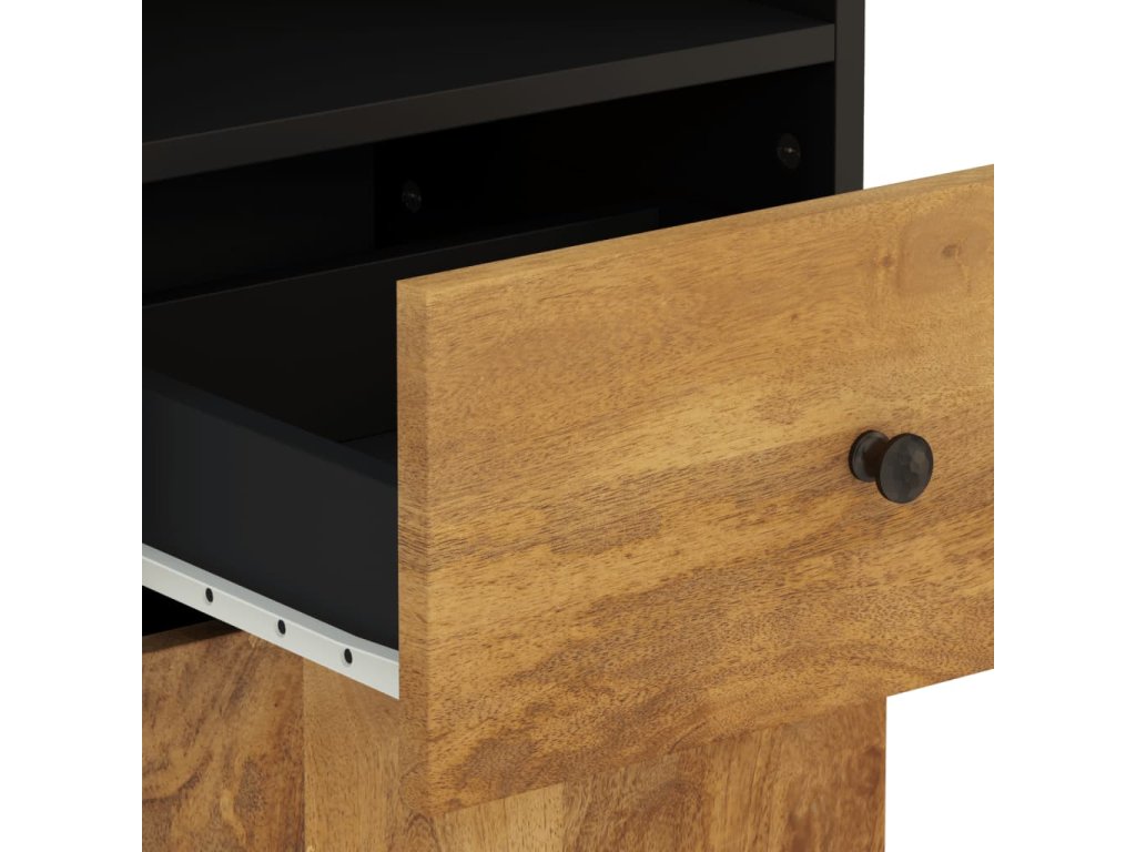 - Materiál: masivní mangovníkové dřevo s medově hnědou povrchovou úpravou, kompozitní dřevo, železo