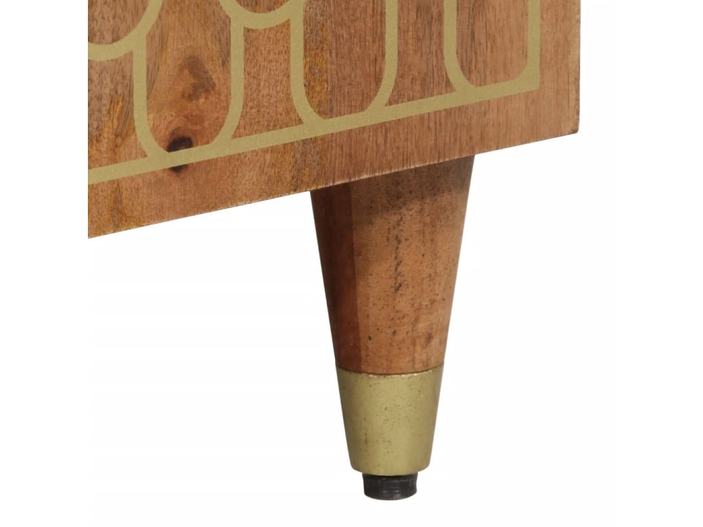 - Materiál: masivní mangovníkové dřevo s medově hnědou povrchovou úpravou, kompozitní dřevo, železo