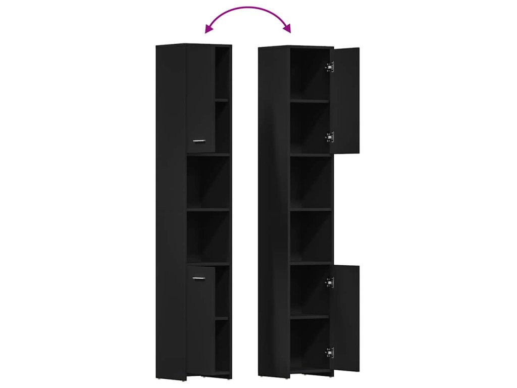 Stylová skříňka je vyrobená z kompozitního dřeva, takže je pevná a stabilní. Je vybavena 6 přihrádkami za 2 dvířky, nabízí tedy celou řadu úložných možností a rovněž dodatečné místo, kam si můžete uklidit vaše koupelnové potřeby. Úchytka na dvířkách napomáhá snadnějšímu otevírání a zavírání. Skříňku jednoduše očistíte navlhčeným hadříkem.