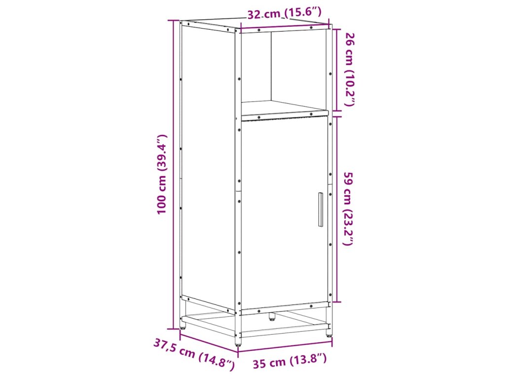 - Celkové rozměry: 35 x 37,5 x 100 cm (Š x H x V)