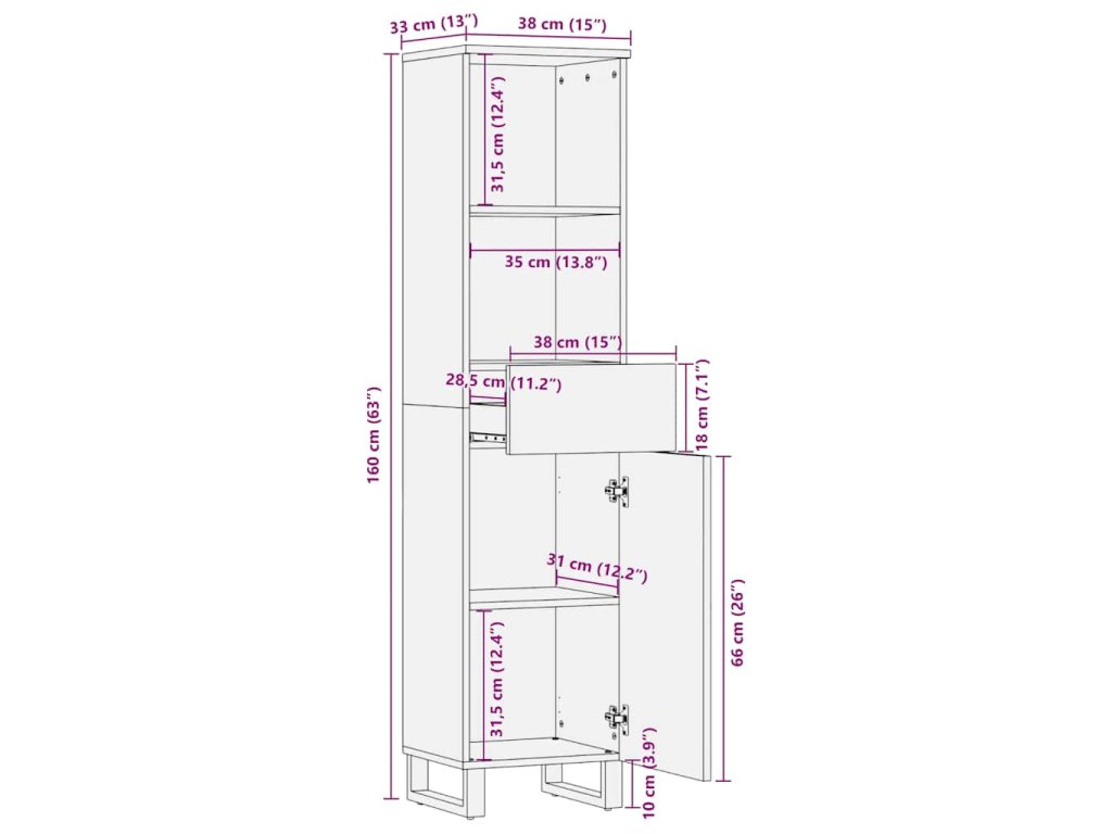 - Celkové rozměry: 38 x 33 x 160 cm (Š x H x V)