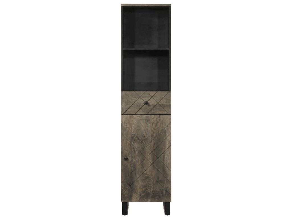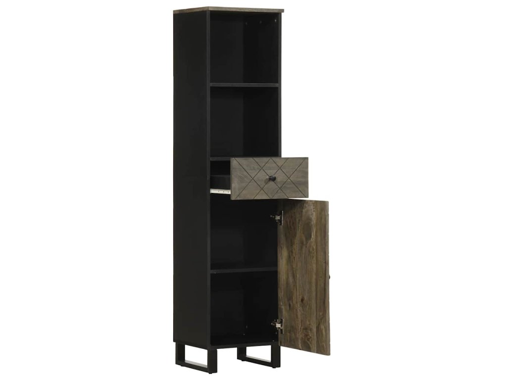 - Materiál: masivní mangové dřevo s šedou povrchovou úpravou pískováním, umělé dřevo, kov