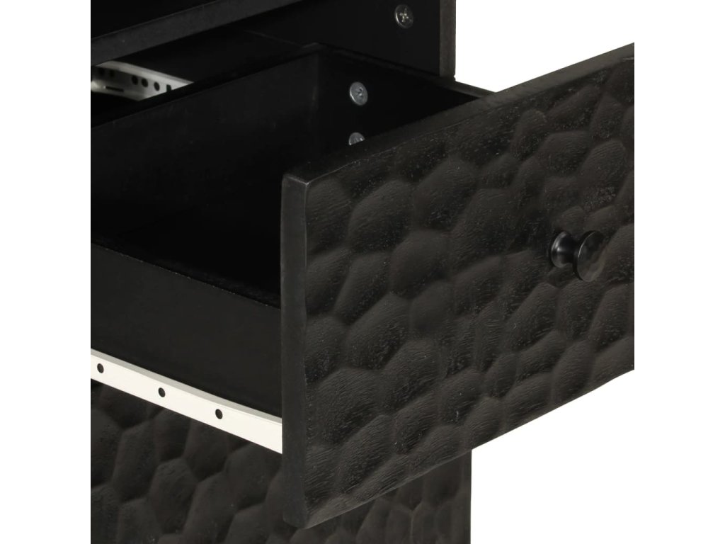 - Materiál: masivní mangovníkové dřevo černě mořené, kompozitní dřevo, železo