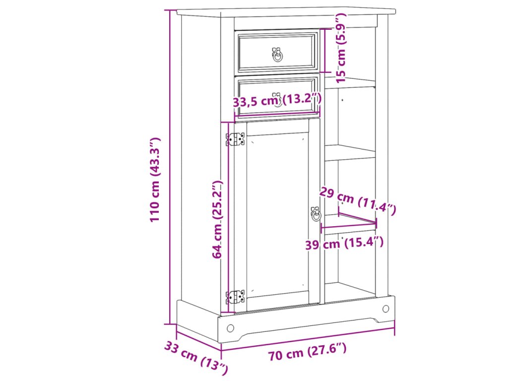 - Rozměry: 70 x 33 x 110 cm (Š x H x V)