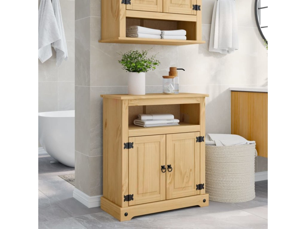 - Kovové úchytky: Skříň do koupelny je vybavena kovovými úchytkami, které usnadňují otevírání a zavírání dveří a zároveň jí dodávají na kráse.