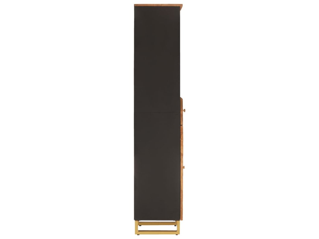- Materiál: masivní mangovníkové dřevo s akáciově hnědou povrchovou úpravou, MDF, železo