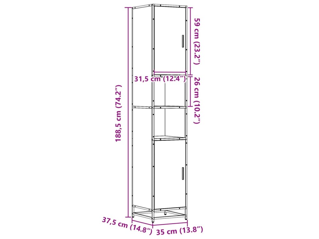 - Celkové rozměry: 35 x 37,5 x 188,5 cm (Š x H x V)