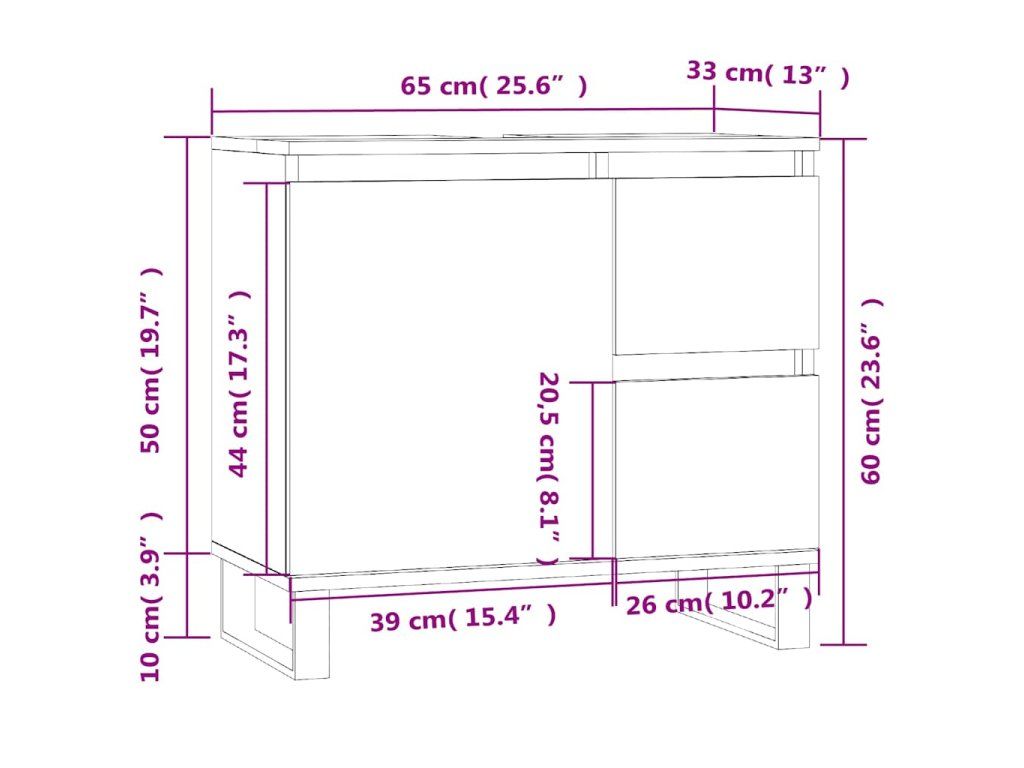 - Dostatek úložného prostoru: Koupelnový nábytek má 1 přihrádku s dvířky a 2 zásuvky, nabízí tedy různé možnosti skladování a další úložný prostor ve vaší koupelně.