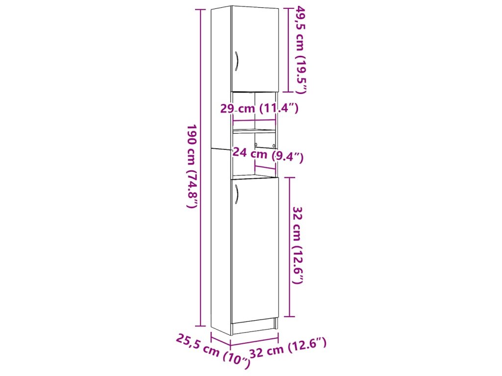 - Rozměry: 32 x 25,5 x 190 cm (Š x H x V)
