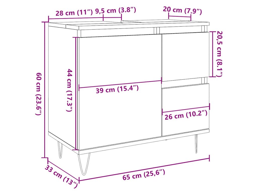 - Železné nožičky: Železné nožičky dodají vašemu interiéru industriální styl a zároveň zajistí výtečnou stabilitu toaletní skříňky.