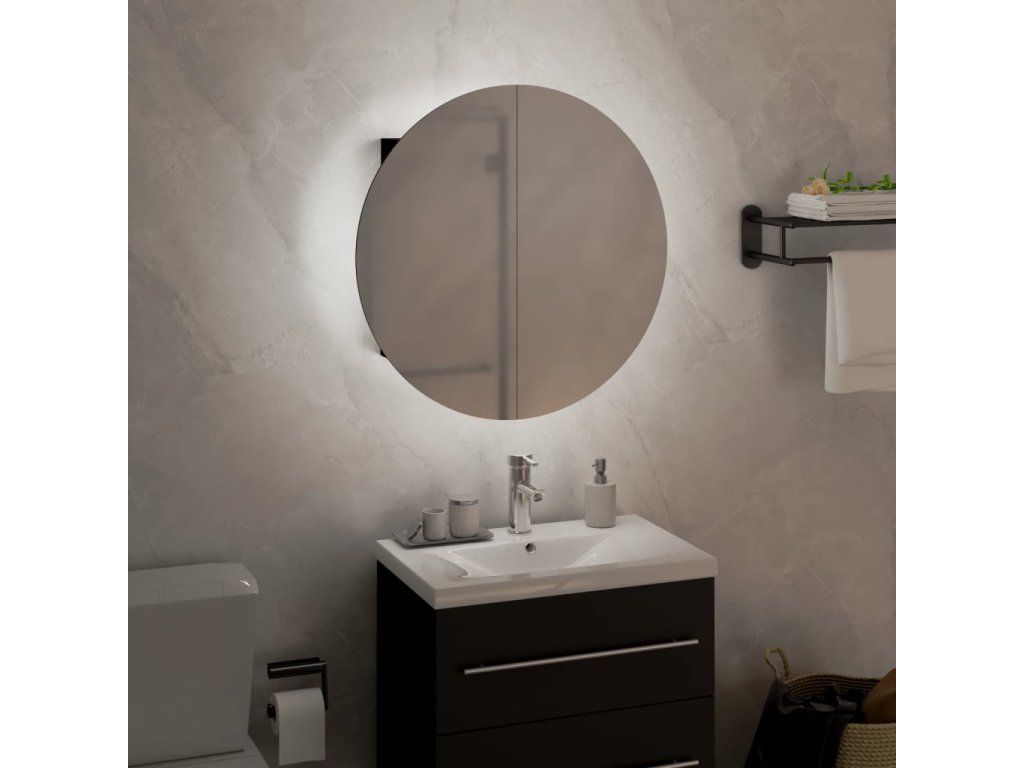 Udržujte své kosmetické doplňky uspořádané a uklizené v této trendy koupelnové skříňce s kulatým zrcadlem a LED světlem!