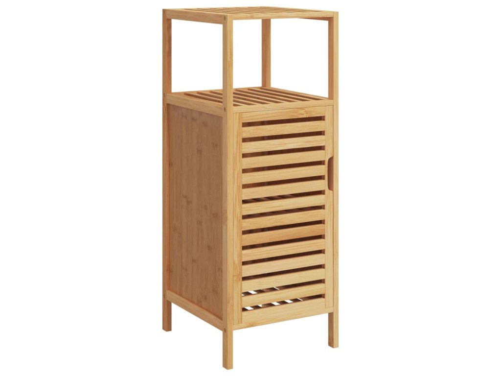 - Lamelová dvířka: Tato koupelnová skříňka s lamelovými dvířky usnadňuje větrání, zabraňuje šíření nepříjemného zápachu a zároveň představuje stylový kousek do vaší domácnosti.