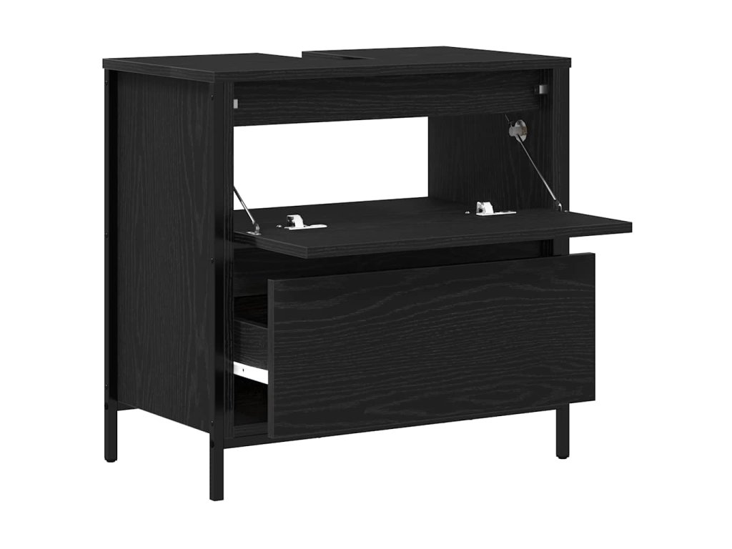 - Dostatek úložného prostoru: Skříňka obsahuje zásuvku a prostorný úložný prostor, který se otevírá dvěma různými způsoby, aby byly vaše předměty dobře uspořádané a uklizené a aby byl zajištěn snadný přístup k různým koupelnovým předmětům.