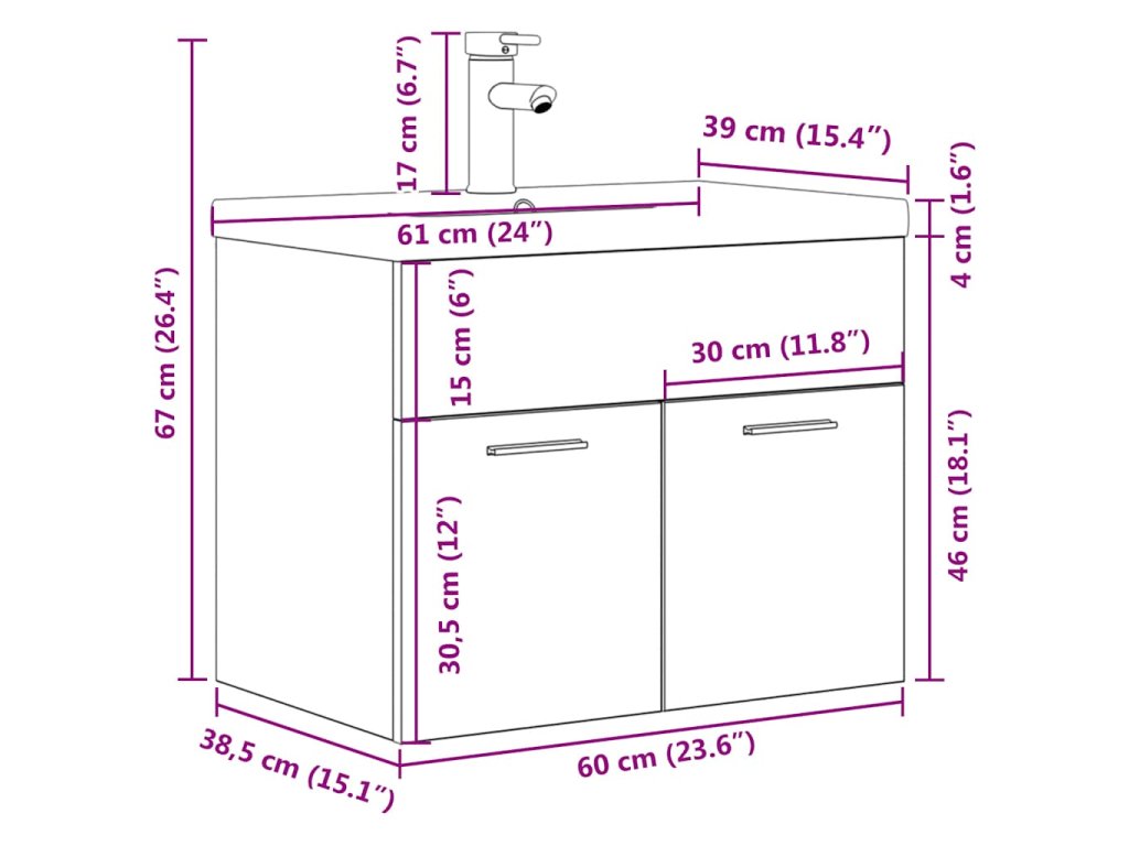 - Rozměry umyvadla: 61 x 39,5 x 18,5 cm (D x Š x V)