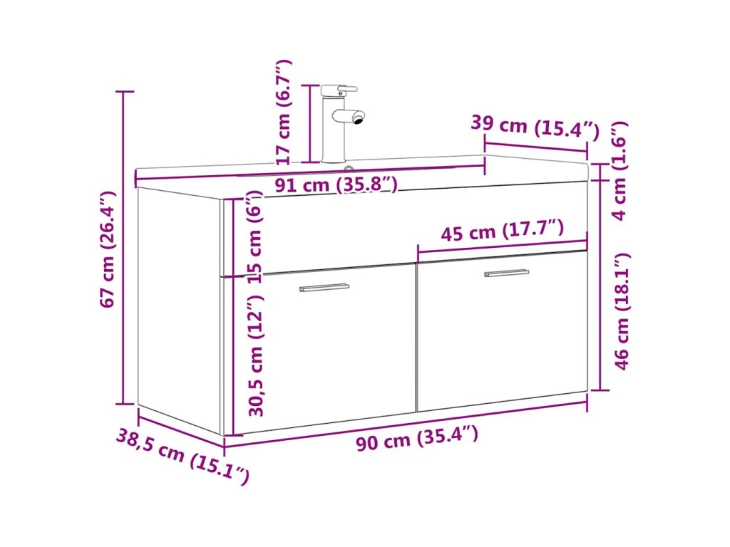 - Rozměry umyvadla: 91 x 39 x 18 cm (D x Š x V)