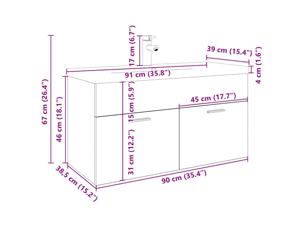 - Rozměry umyvadla: 91 x 39 x 18 cm (D x Š x V)