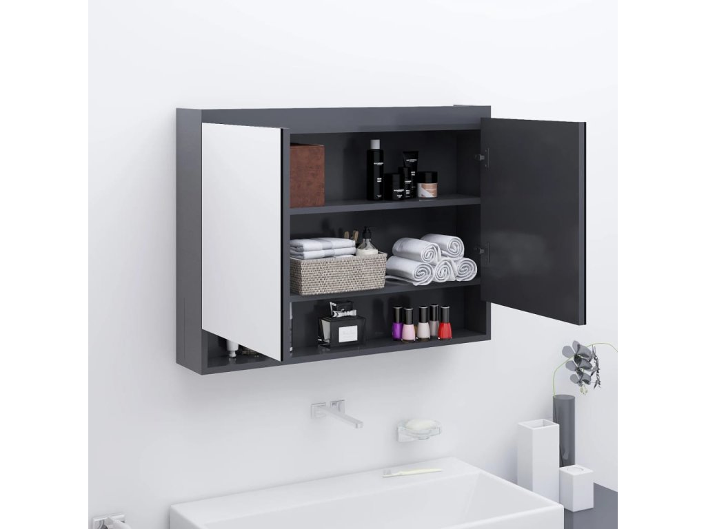 Nástěnná zrcadlová skříňka je vyrobená ze skla a MDF s melaninovým povrchem a je odolná a stabilní. Skříňka má 2 dvířka a celkem 3 přihrádky, které poskytují dostatek úložného prostoru. Snadno si do ní uložíte vaše každodenní toaletní a kosmetické potřeby, jako jsou mýdla, šampony, zubní pasty atd.
