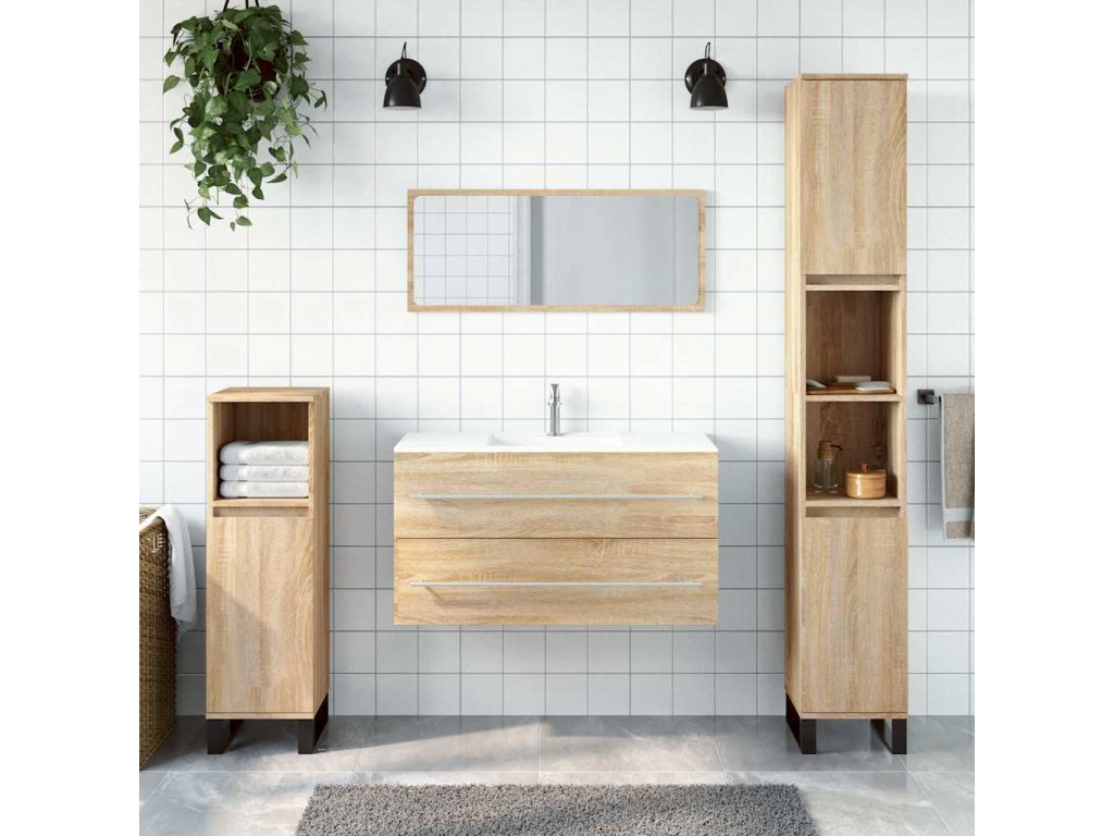 - Spousta úložného prostoru: Tento koupelnový nábytek nabízí dostatek úložného prostoru pro přehledné uložení koupelnových potřeb.