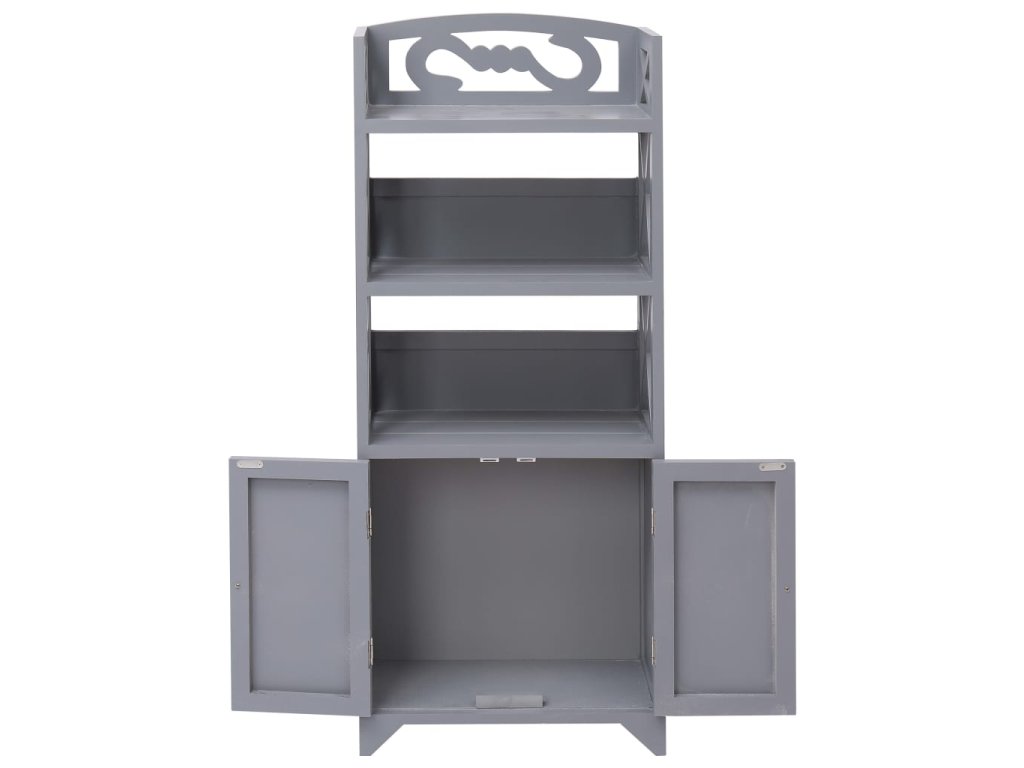 Tato koupelnová skříňka je vyrobená ze dřeva pavlovnie a MDF a představuje dokonalý nadčasový doplněk do vašeho domova. Najdete v ní 3 otevřené přihrádky a 2 dvířka, kam si můžete uložit ručníky, prádlo, kosmetiku a další různé koupelnové doplňky. Jelikož se jedná o velmi všestrannou skříňku, lze ji rovněž postavit na chodbu, do kanceláře nebo do pokoje pro hosty.
