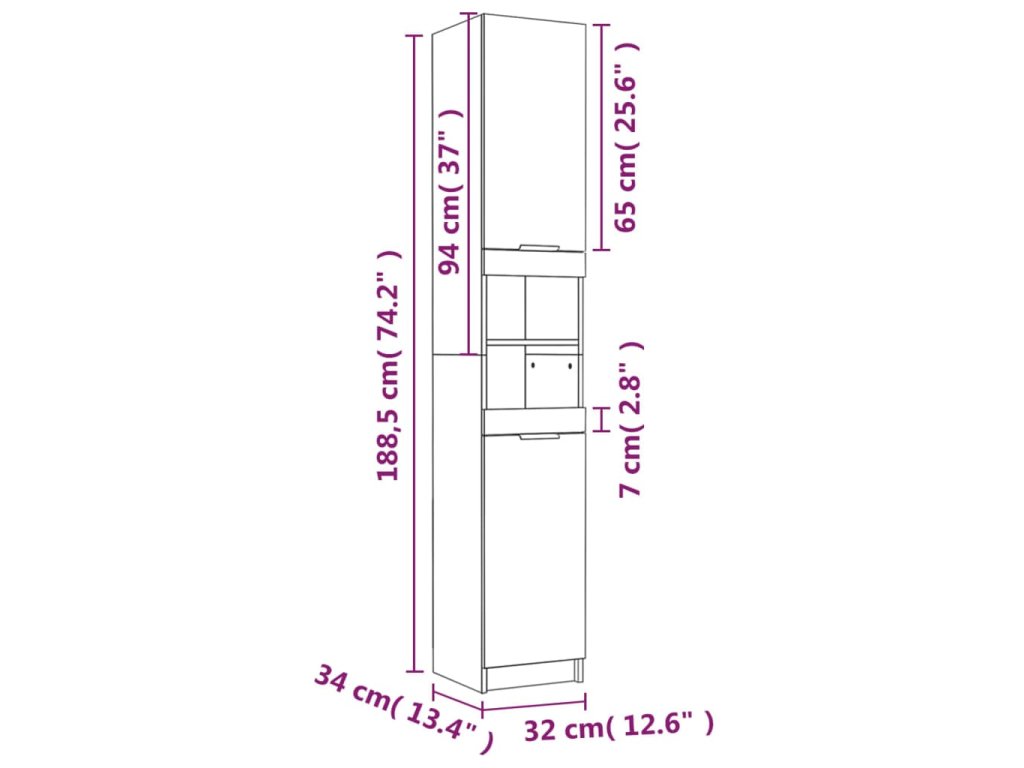 - Rozměry: 32 x 34 x 188,5 cm (Š x H x V)