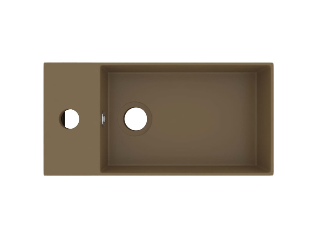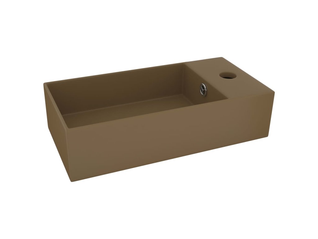 Kvalitní keramika s matným povrchem se snadno čistí. Přepadový otvor zajistí odtok vody, když je umyvadlo zaplněné. V umyvadle je též otvor pro instalaci vodovodní baterie. Odtokový otvor má průměr 4,5 cm. Je vhodný k instalaci na desku. Poznámka: Vodovodní baterie není součástí balení.
