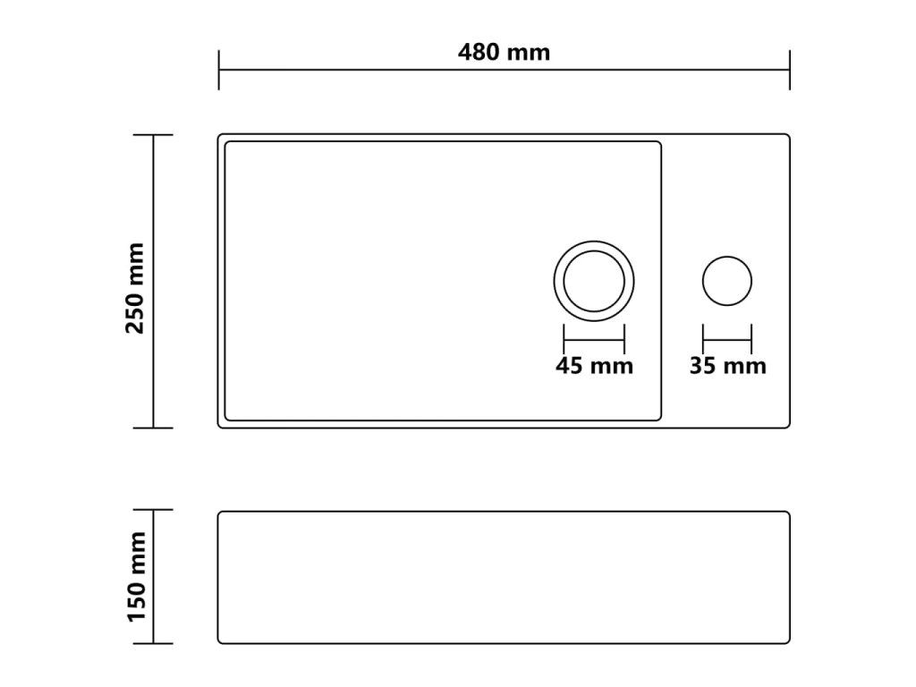 Kvalitní keramika s matným povrchem se snadno čistí. Přepadový otvor zajistí odtok vody, když je umyvadlo zaplněné. V umyvadle je též otvor pro instalaci vodovodní baterie. Odtokový otvor má průměr 4,5 cm. Je vhodný k instalaci na desku. Poznámka: Vodovodní baterie není součástí balení.