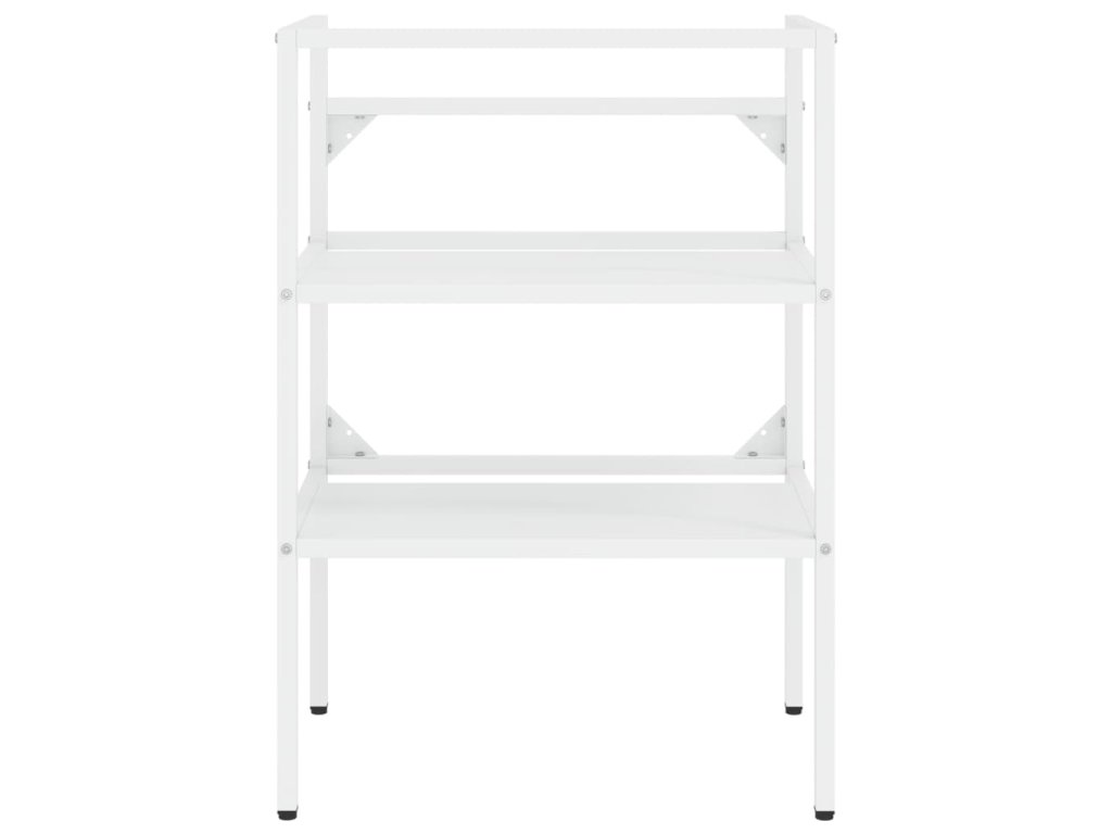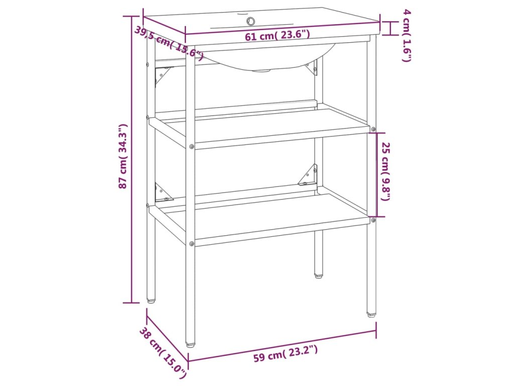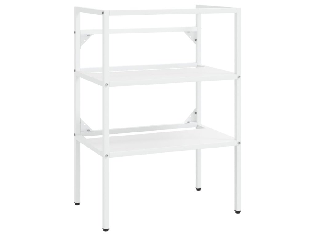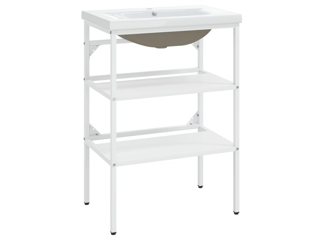 Stojan je vyroben z práškově lakovaného železa, takže je stabilní a odolný. Tento umyvadlový rám umožňuje snadný přístup k ručníkům a košíčkům a nabízí větší úložný prostor než uzavřené skříňky. Keramické umyvadlo je kromě praktického využití také ozdobou vašeho obytného prostoru. Se svým moderním designem se toto umyvadlo hodí do každého interiéru. Je vybavené přepadem pro odtékání vody a jeho glazovaný povrch přináší moderní a elegantní design. Rám i umyvadlo se navíc snadno čistí vlhkým hadříkem.