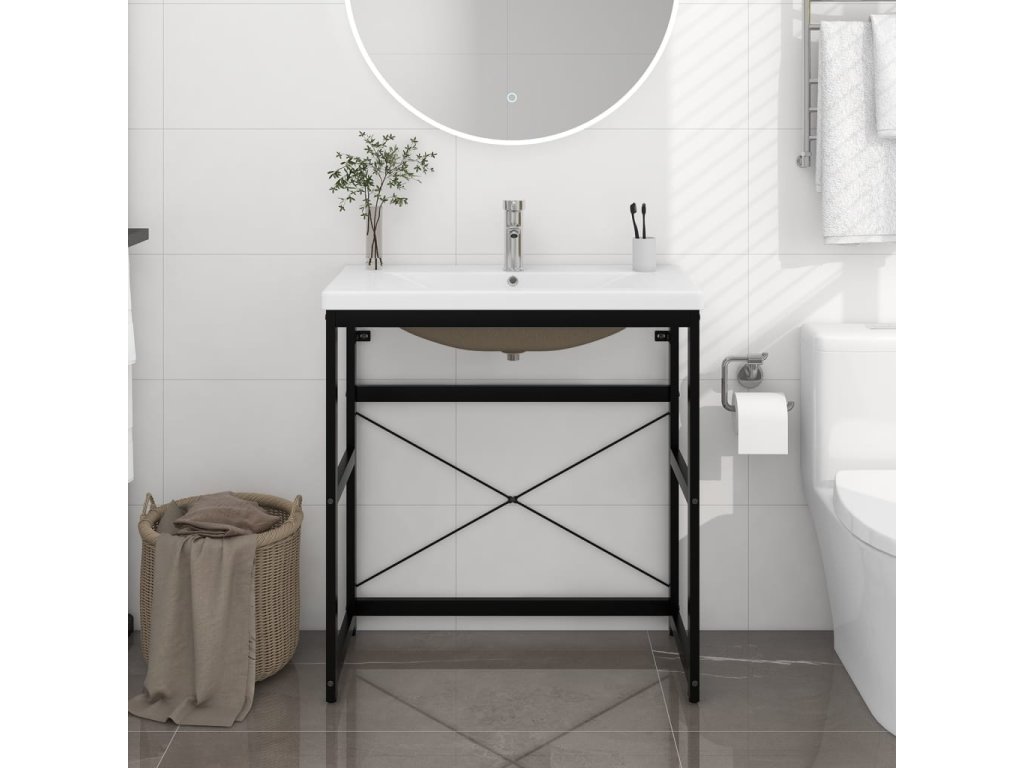 Stojan je vyroben z práškově lakovaného železa, takže je stabilní a odolný. Tento umyvadlový rám umožňuje snadný přístup k ručníkům a košíčkům a nabízí větší úložný prostor než uzavřené skříňky. Keramické umyvadlo je kromě praktického využití také ozdobou vašeho obytného prostoru. Se svým moderním designem se toto umyvadlo hodí do každého interiéru. Je vybavené přepadem pro odtékání vody a jeho glazovaný povrch přináší moderní a elegantní design. Rám i umyvadlo se navíc snadno čistí vlhkým hadříkem.